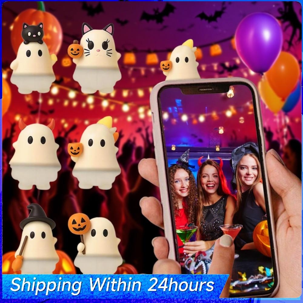 Ghostees Mystery Phone Buddy Stick-On Halloween Ghost & Pumpkin Phone Topper Cute Strong Adhesive Cling Decor