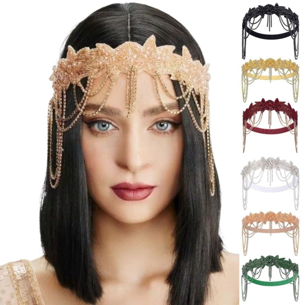 Chain Tassel Rhinestone Headband Flower Shape Bridal Headdress Party Banquet