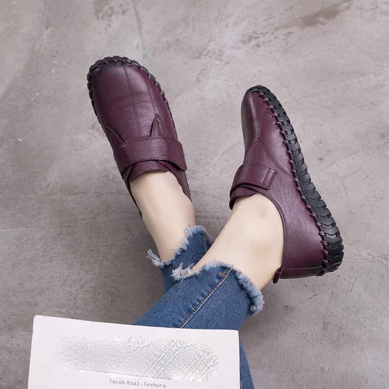 Women's Flat Shoes with Handmade Leather Women's Shoelace Hooks and Loops in Spring, Women's Soft Flat Loafers in Autumn