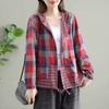 Fashion Korean Spring Clothes Womens Plaid Hooded Shirts Ladies Linen Loose Blouses Female Casual Oversized