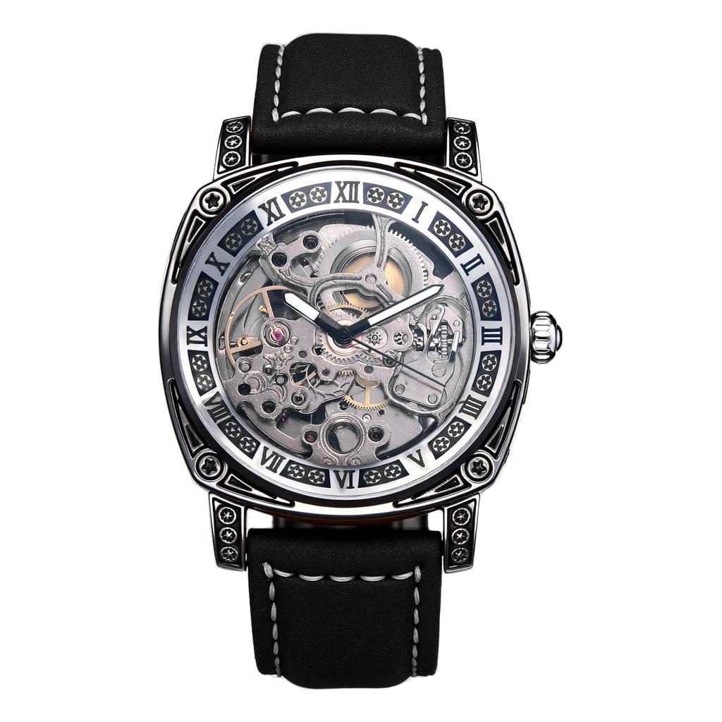 Men's Automatic Skeleton Watch with Genuine Leather Strap: Roman Numerals, Analog Display, 3ATM Water Resistance, Stylish Accessory for Leisure and