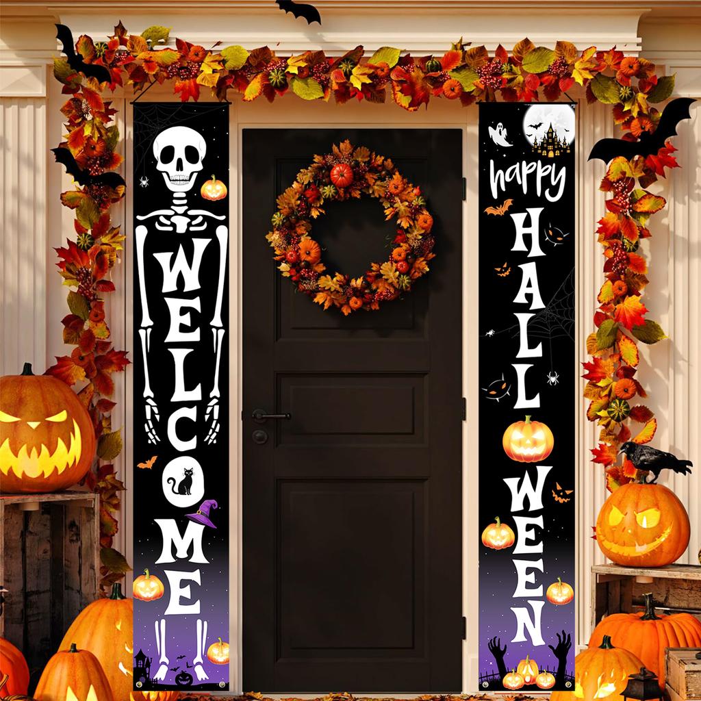 Halloween Hanging Door Curtain Skeleton Banner Happy Halloween Party Porch Sign For Home Party Decor Halloween Decorations 2025