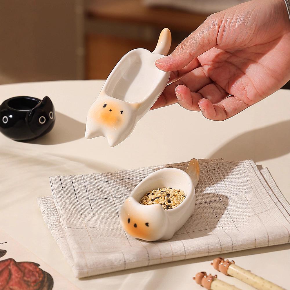 Cute Siamese Cat Ceramic Dipping Dish Household Hot Pot Seasoning Dish Seasoning Dish Sauce Dish Vinegar Dish Hand Painted Small Dish Purple