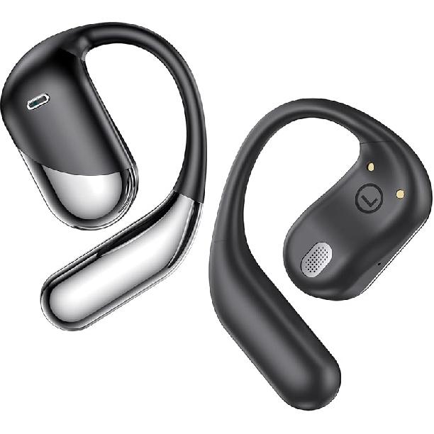 Open Ear Bluetooth 5.4 Headphones, Wireless Earbuds Sport Over Earphones with Ear Hooks 50H Playtime Ear Buds LED Display Charging Case, Waterproof