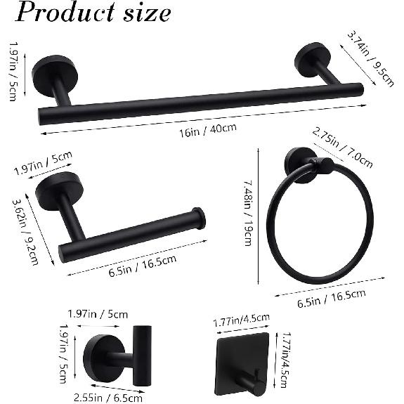 14-Pieces Matte Black Bathroom Accessories Set, Stainless Steel Bathroom Hardware Set, Bath Towel Bar Set, Towel Racks for Bathroom Wall Mounted.