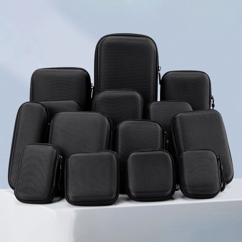 New Hard Shell EVA Storage Box Mini Portable Zipper Earphone Case Black Protective Storage Case Charging Cable