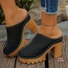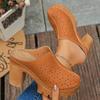 Women's Plus Size Suede High Heel Slippers Summer European American Style Carved Hollow Closed Toe Thick Block Heel