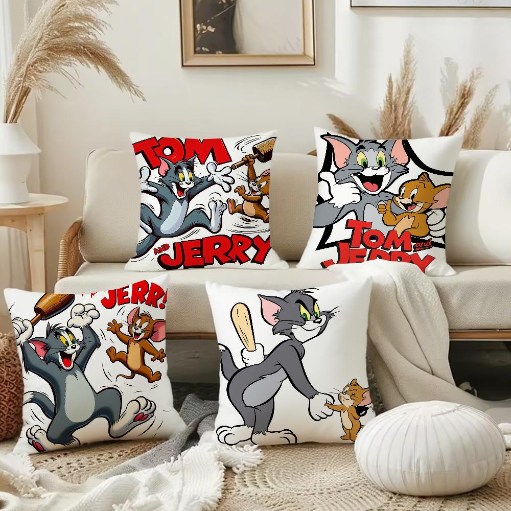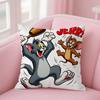 Husa de Pernă Amuzantă Desen Animat T-Tom și J-Jerry Pătrată Imprimare Față-Verso Pluș Scurt Husă Pernă Canapea Dormitor Noptieră