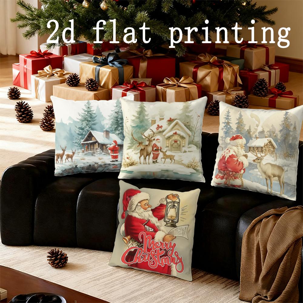 Home Decor Christmas Santa & Deer Holiday Pillow Covers Pattern Cushion Cover Suitable for Sofa Bedroom Car Pillow Cover