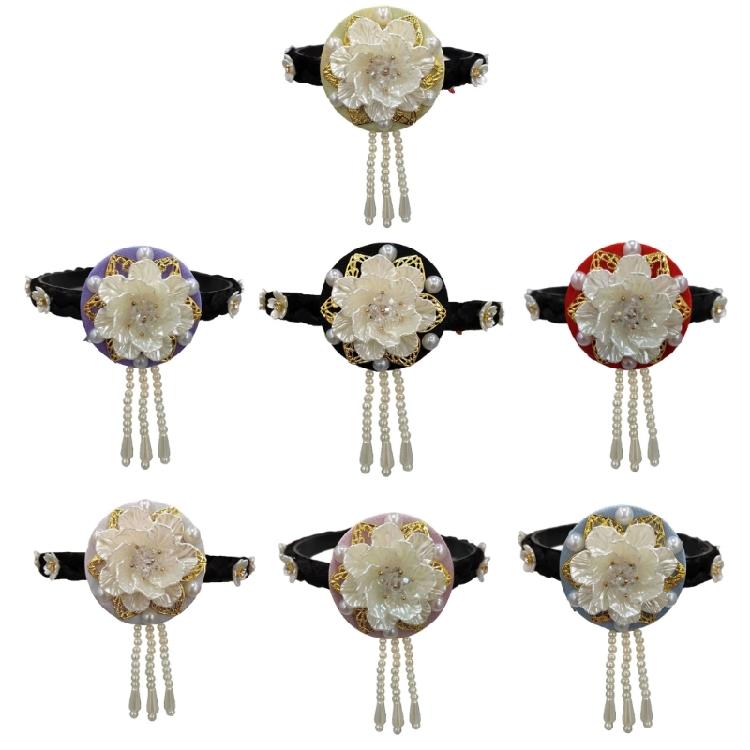 Flower Pearls Korean Hair Hoop Traditional Headband for Stage Shows and Ethnic Festivals Handmade Hair Accessories