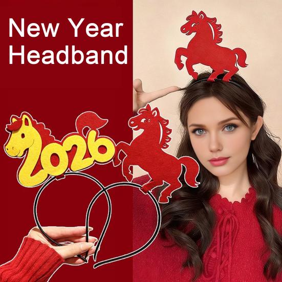 Zodiac Theme Design: Embracing the 2026 Year of the Horse, the headband showcases a striking red horse figure alongside the "2026" inscription. This thematic detail creates an authentic New Year atmosphere and makes it an ideal accessory for memorable holiday photos.