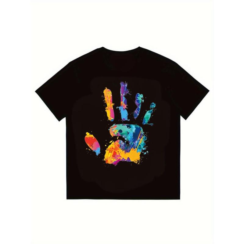 Black T Shirt Colorful Handprint Design Streetwear Fashion Casual Wear