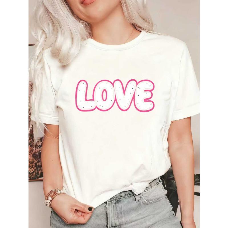 Women's Short-Sleeve T-Shirt with Pink Border 3D "LOVE" Letter Print