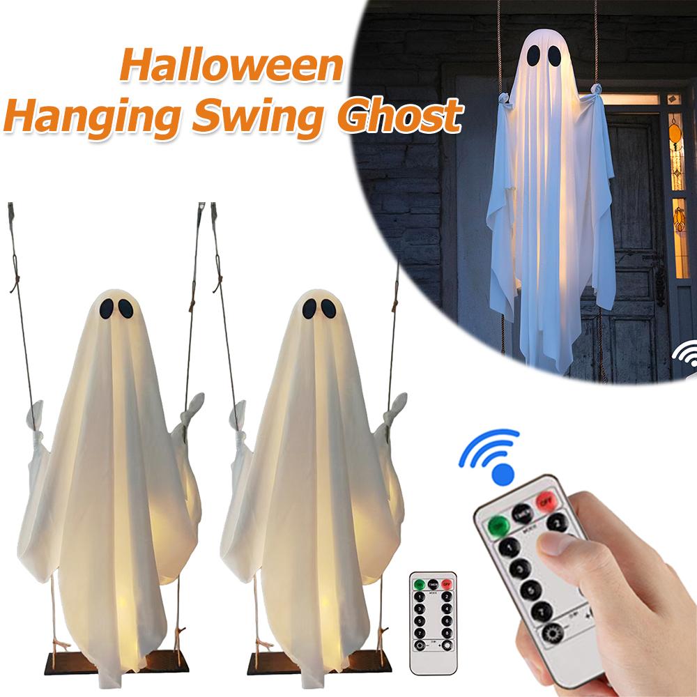 Halloween Hanging Swing Ghost with String Lights Spooky Swing Ghost for Tree Porch Yard Garden Lawn Halloween Decoration