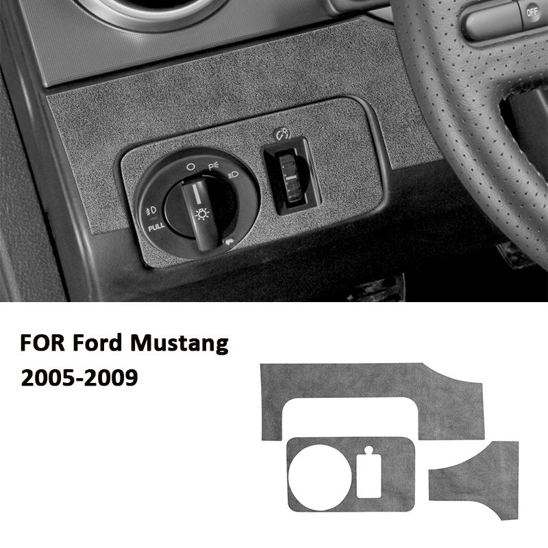 For Ford Mustang 2005-2009 Soft Suede Fabic Car Headlight Control Panel Adjusting Switch Trim Frame Interior Decoration Sticker