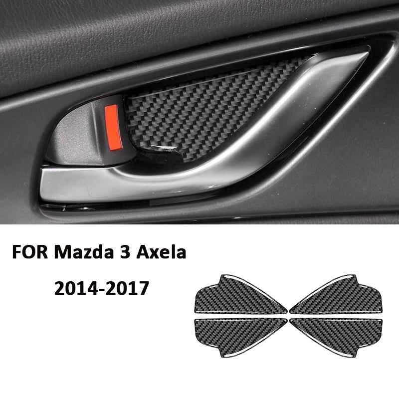 Carbon Fiber 4PCS Car Inner Door Pull Handle Panel Ring Bowl Cover Decoration Sticker For Mazda 3 Axela 2014-2017 Accessories