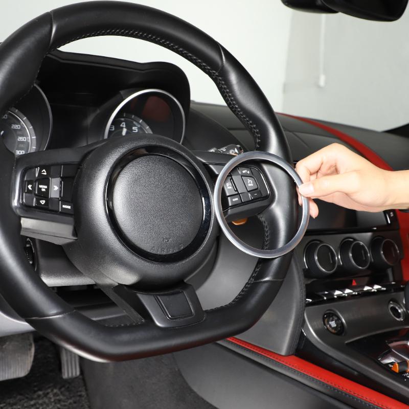 For Jaguar F-TYPE 2013-22 ABS Carbon Fiber Car Steering Wheel Emblem Sticker Trim Cover Decorate Ring Interior Accessories