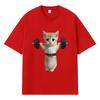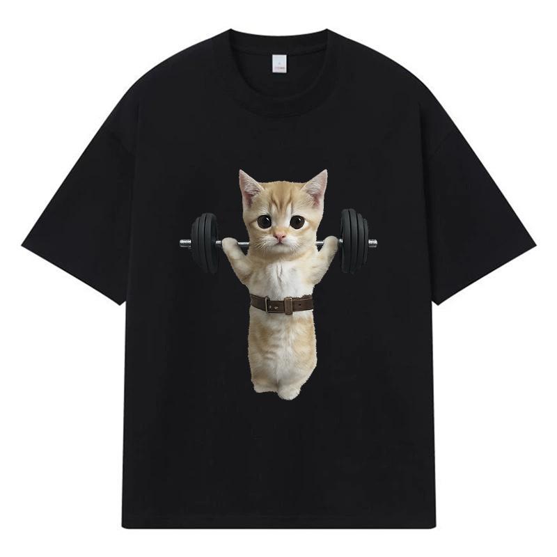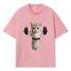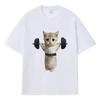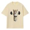 2026 Cat Lifting Dumbbell Printed Graphic Y2k Harajuku Streetwear 100% Cotton T Shirt Casual Oversized Summer Men T-shirt