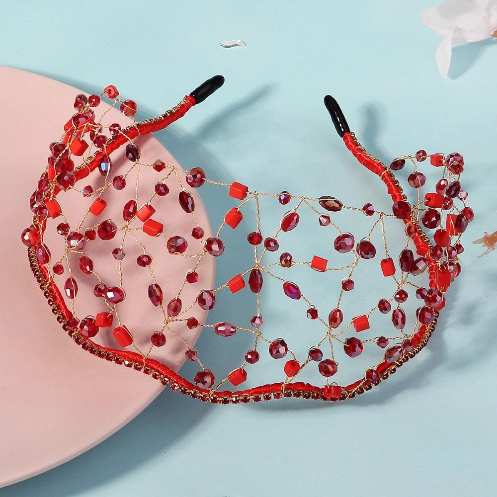 Handmade Hair Bands Ethnic Style Bride Headband Elegant Crystal Hair Net Wedding Hair Accessories