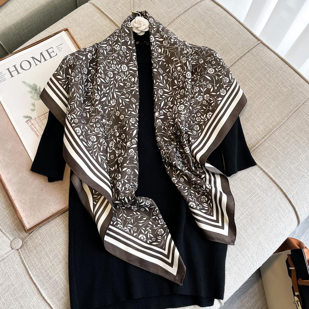 New Silk Square Scarf for Women Satin Shawls Neckerchief Casual Scarves Bandana Hair Hjiab 90*90cm Luxury Brand Versatile Fashio