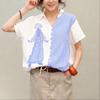 ZANZEA Bluză casual de damă cu guler răsucit, mânecă scurtă, cu dungi