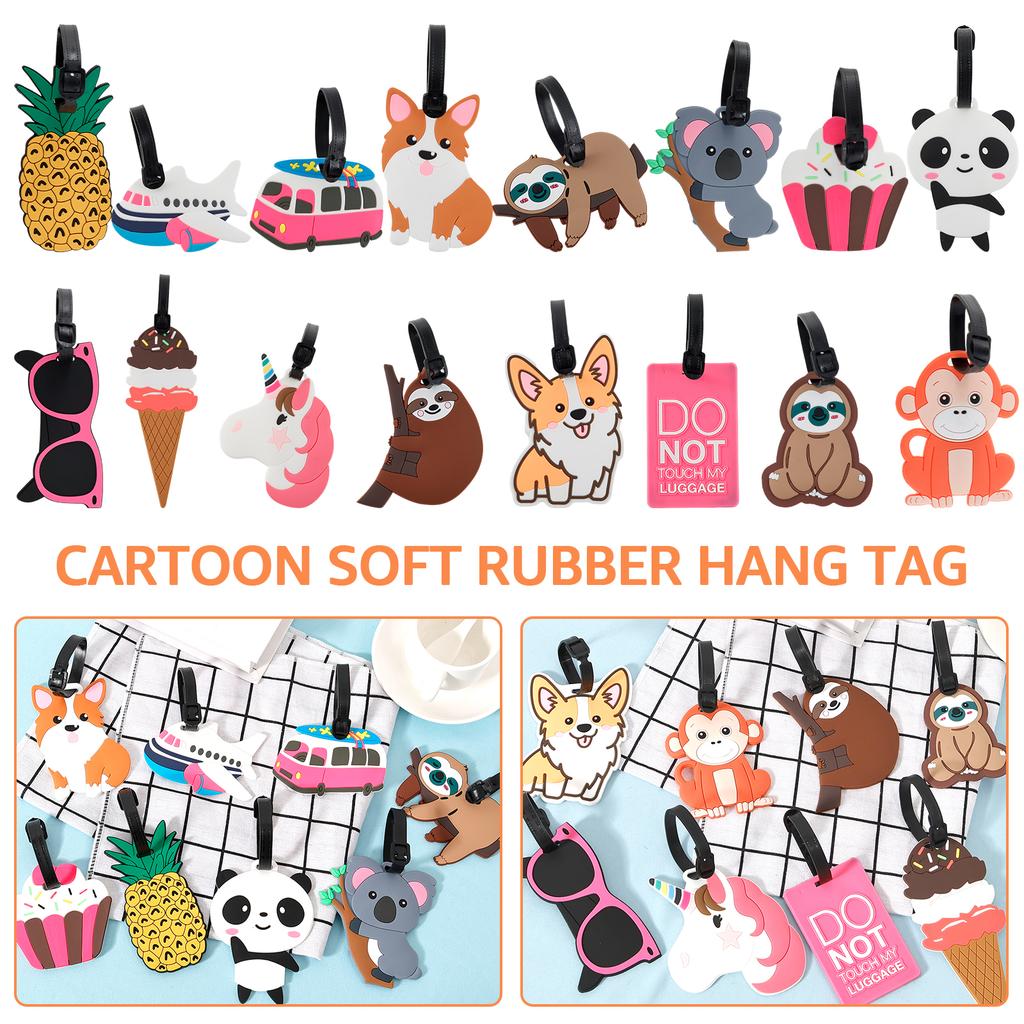 8Pcs Cartoon Luggage Tags Suitcase Identify Labels PVC Travel Baggage Tags with Adjustable Strap for Suitcases Travel Bag Decor