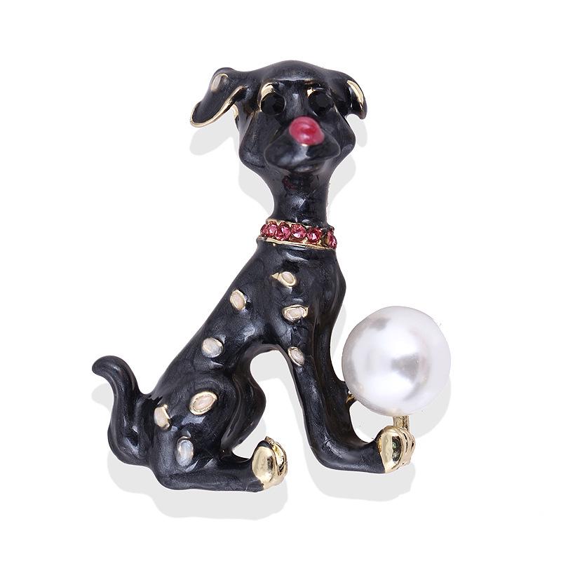 Cute Puppy Brooch Female Pearl Corsage Spotted Dog Year Budding Pet Scarf Pin Buckle The Year of The Zodiac Badge Long-Lasting Color Exquisite Brooch