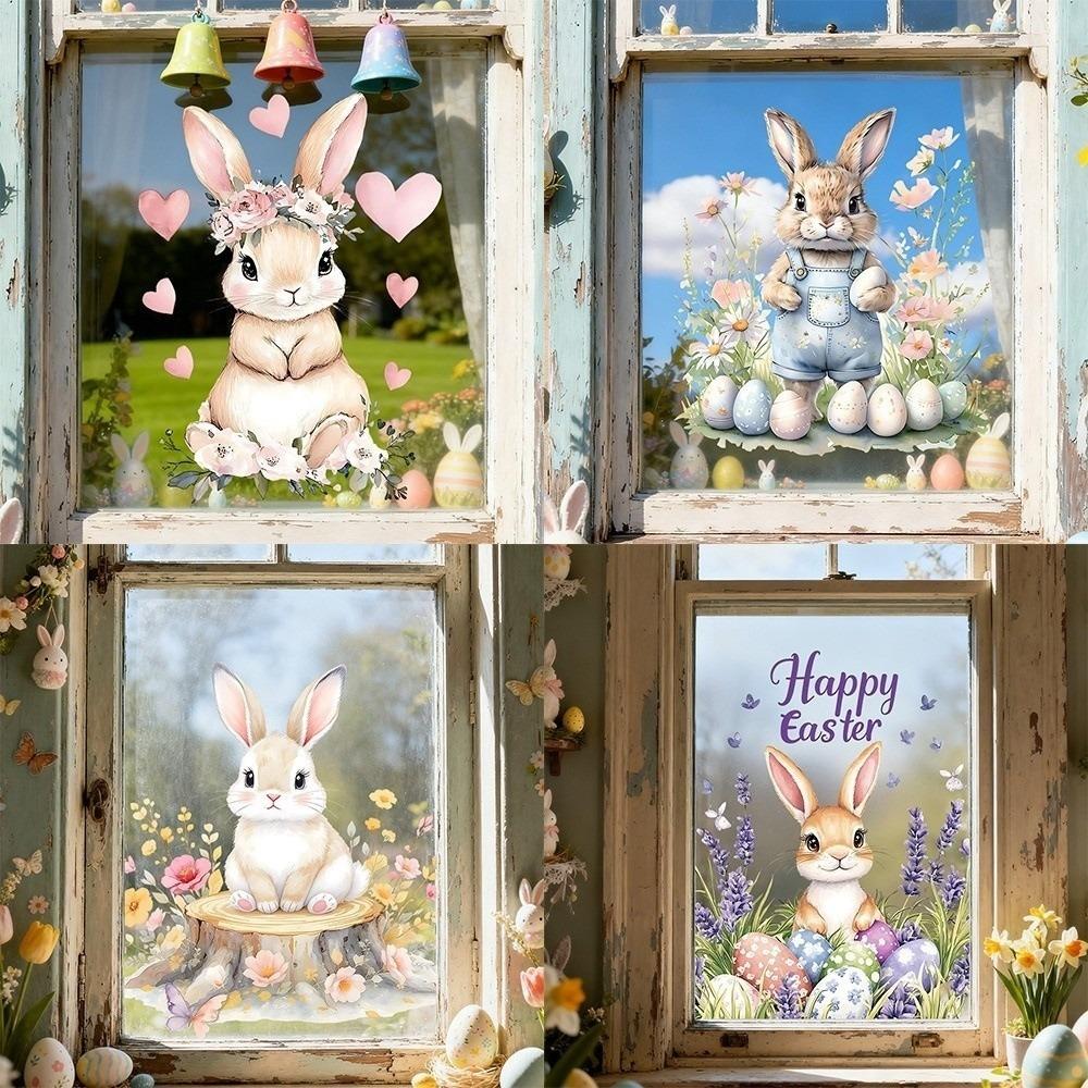PVC Wall Stickers Self-Adhesive Festival Party Sticker New Flower Rabbit Sticker Wall Decoration