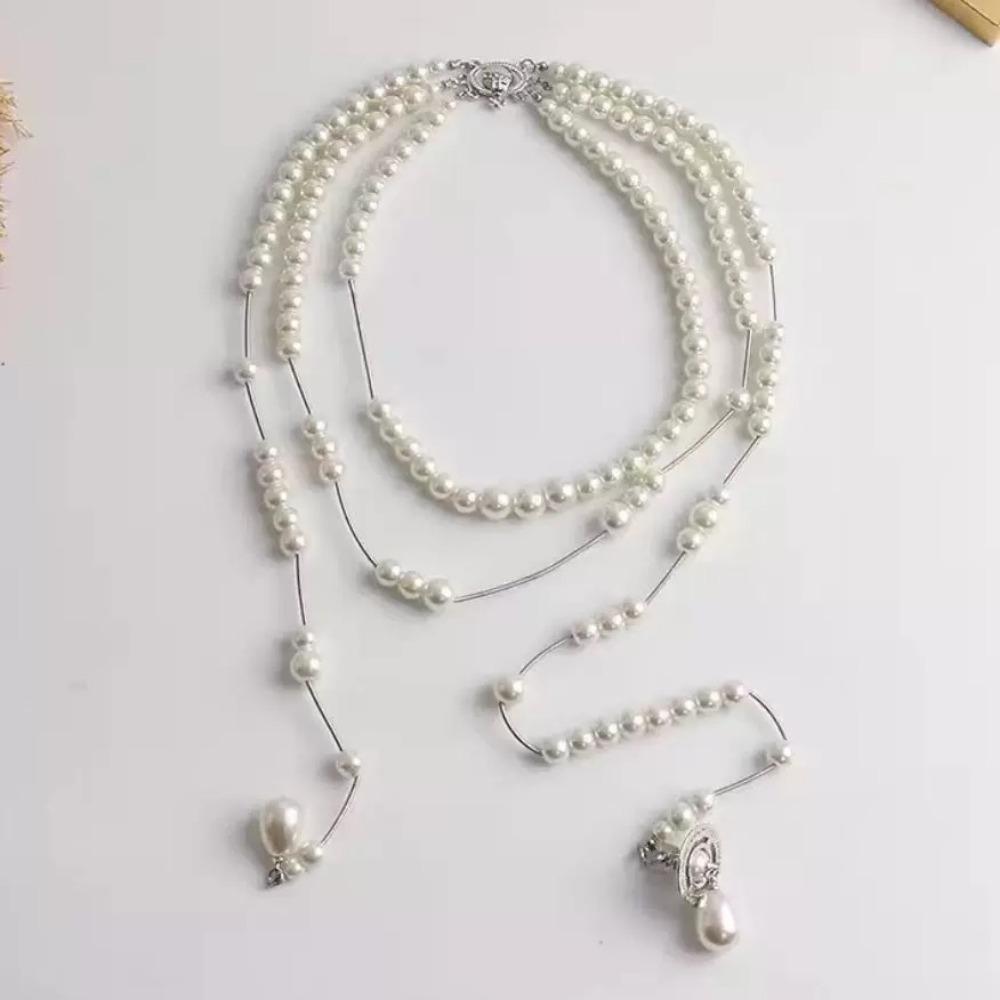 Fashion Jewelry Pearl Sweater Chain Asymmetric Pearl Choker Multi-Layer Necklace French Style