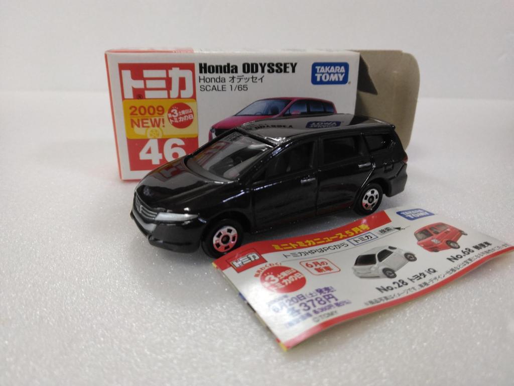 Out-of-print Tomica 2009 Honda Odyssey diecast car, 1/65 scale, made in China, No. 46, collectible miniature car, with clear case