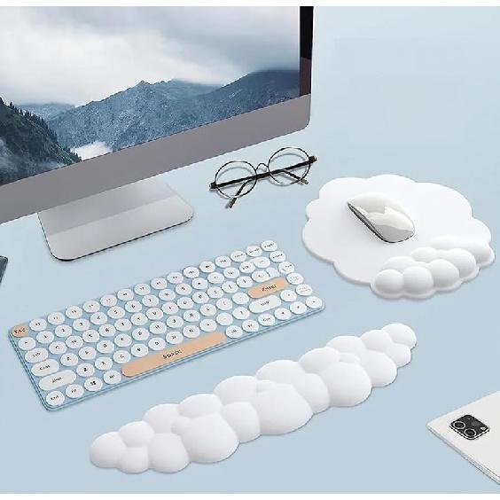 17 in Cloud Keyboard Wrist Rest, 3Pcs Mouse Pad Wrist Support Set with Ergonomic Memory Foam, Coaster Anti-Slip Base, Palm for Home Office Laptop