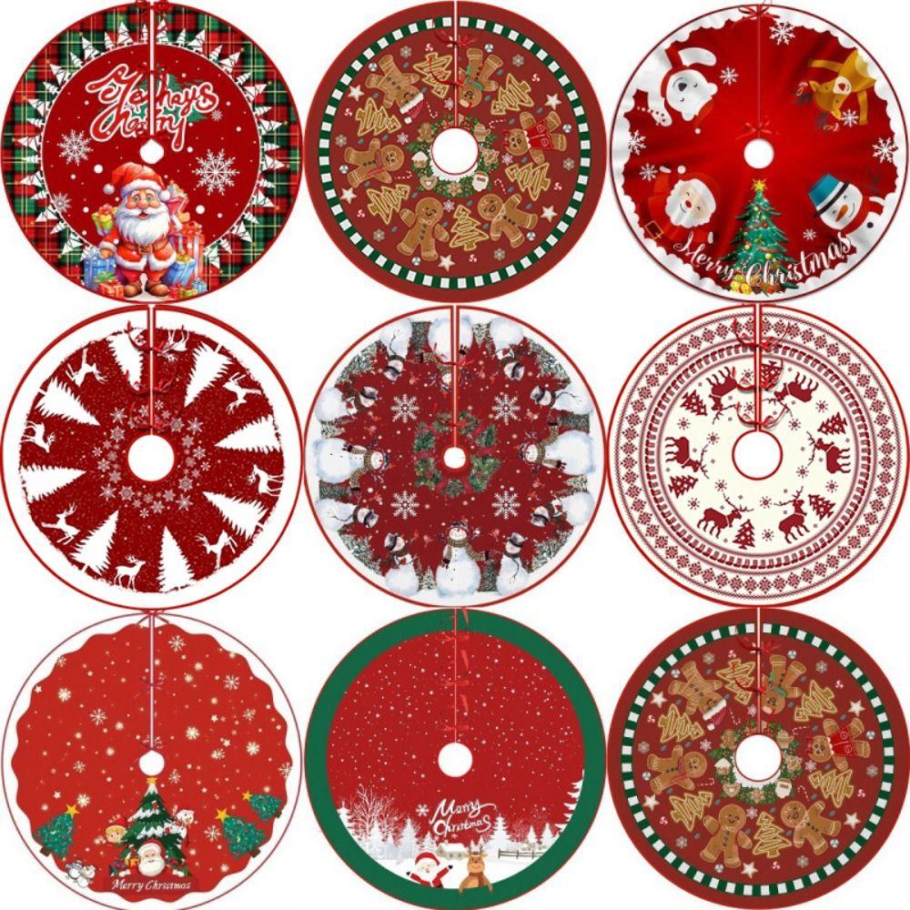 Flannel Xmas Tree Skirt Collar Santa Claus Snowflakes Xmas Decorative Tree Mat