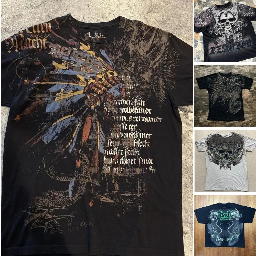 Topuri Retro Affliction anii 2000 Vară Stradă Gotic Retro Imprimat Tricou Supradimensionat Bărbați Hip Hop Harajuku Punk Mânecă Scurtă Tricouri Îmbrăcăminte Femei