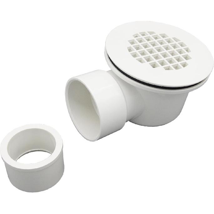 2" Low Profile Shower Drain with 2" x 1-1/2" Reducer Pipe Fitting and Perforated Strainer- PVC Side Outlet Drain Assembly for Replacement Shower Base