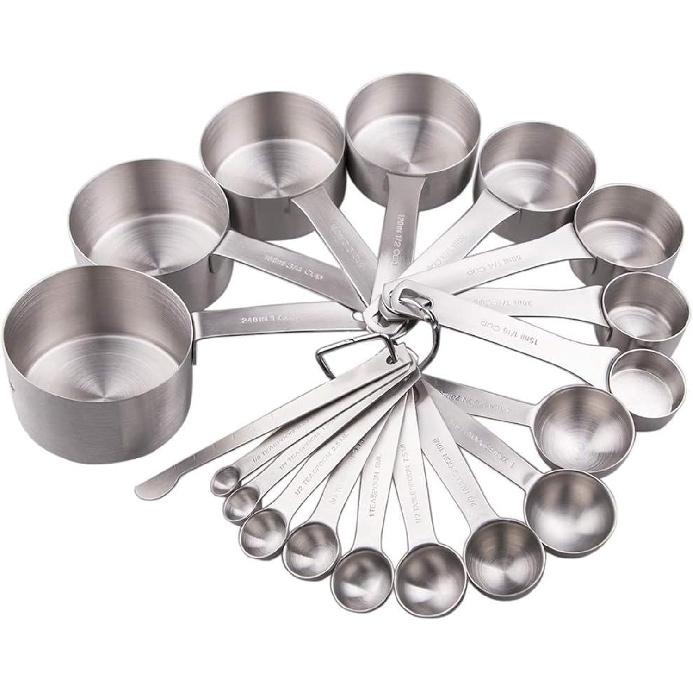 Smithcraft Measuring Cups and Spoons Set 18, Stainless Steel Measuring Cups and Spoons Set, 18/8(304) Steel Heavy Duty 8 Measuring Cups & 9 Measuring