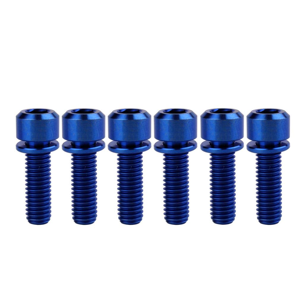Titanium Bolt Hex Screw M5x16 18 20mm Stigma Chamfer Head Bolt with Washer for Bicycle Stem Parts Pack of 6 (Blue, M5x16mm)