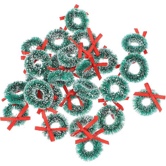 24Pcs Mini Christmas Wreath Artificial Dollhouse Decoration Miniature Christmas Wreath Christmas Tree Hanging Ornaments Christmas Decorations
