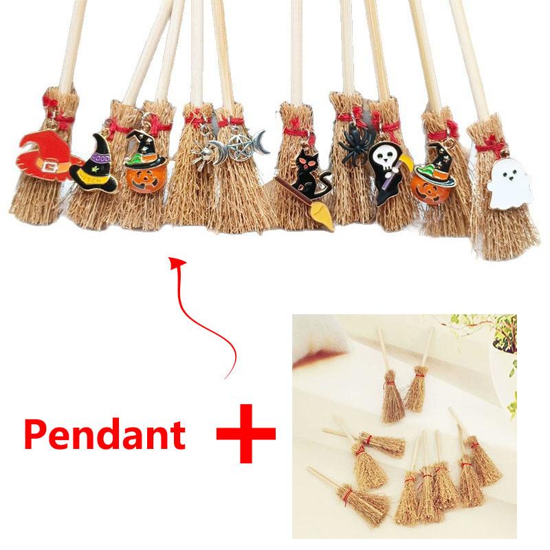 Mini Broom Decorations Red Rope Lightweight Straw Brooms Hangings Decorations for Costume Party Halloween Party Ghost Pumpkin