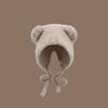 1Pc Women Cute Warm Beanie with Bear Era Earmuffs,Outdoor Travel Cycling Knitt Thick Fluffy Warm Pullover Cap for Autumn/Winter