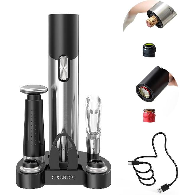 CIRCLE JOY Electric Wine Opener Set Automatic Wine Opener Kit for Wine and Beer Cordless Electric Wine Bottle Openers Gift Set with Foil Cutter,