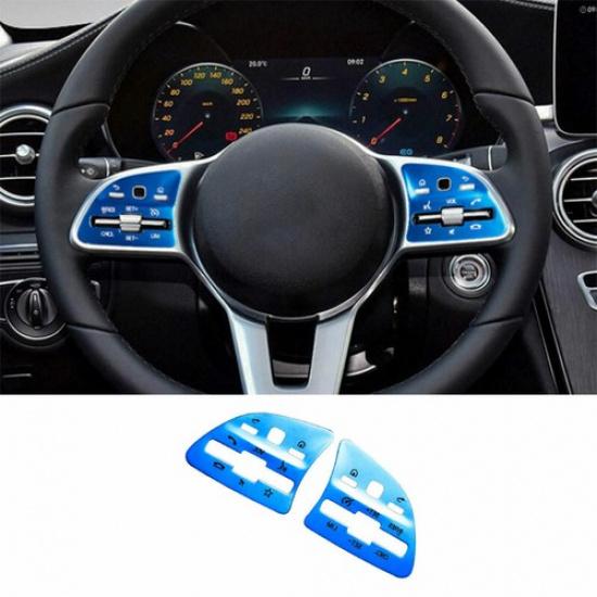 Blue Aluminum Steering Wheel Switch Cover Trim 2X Fit For Benz C-Class 2019-2021