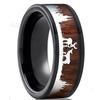 2023 8mm Men Black Titanium Wild Life Hunting Ring Koa Wood Inlay Deer Family Silhouette Steel Ring Men Wedding Band
