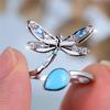 Charm Female White Green Stone Water Drop Dragonfly Adjustable Open Ring Silver Color Cute Gift Wedding Jewelry For Women