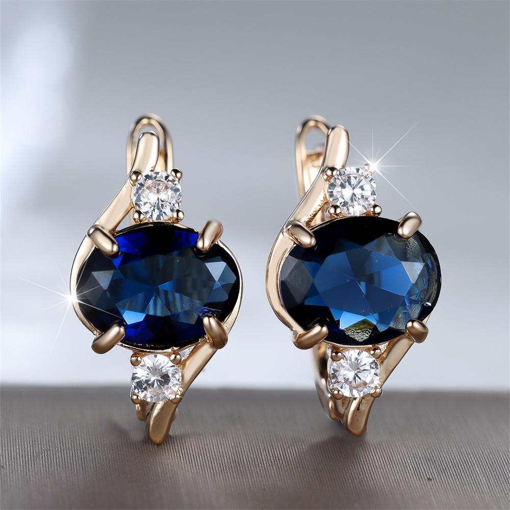 Geometric Zircon Blue Crystal Oval Stone Hoop Earrings For Women Vintage Gold Color Ear Buckle Wedding Jewelry Engagement Gifts