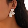 KunJoe Elegant White Half Flower Stud Earrings for Women Luxury Dripping Oil Petals Piercing Earrings Wedding Party Jewelry