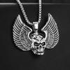 Gothic Skull With Angel Wings Necklace Men's Stainless Steel Creative Handmade Hip Hop Pendant Jewelry Gift Dropshipping