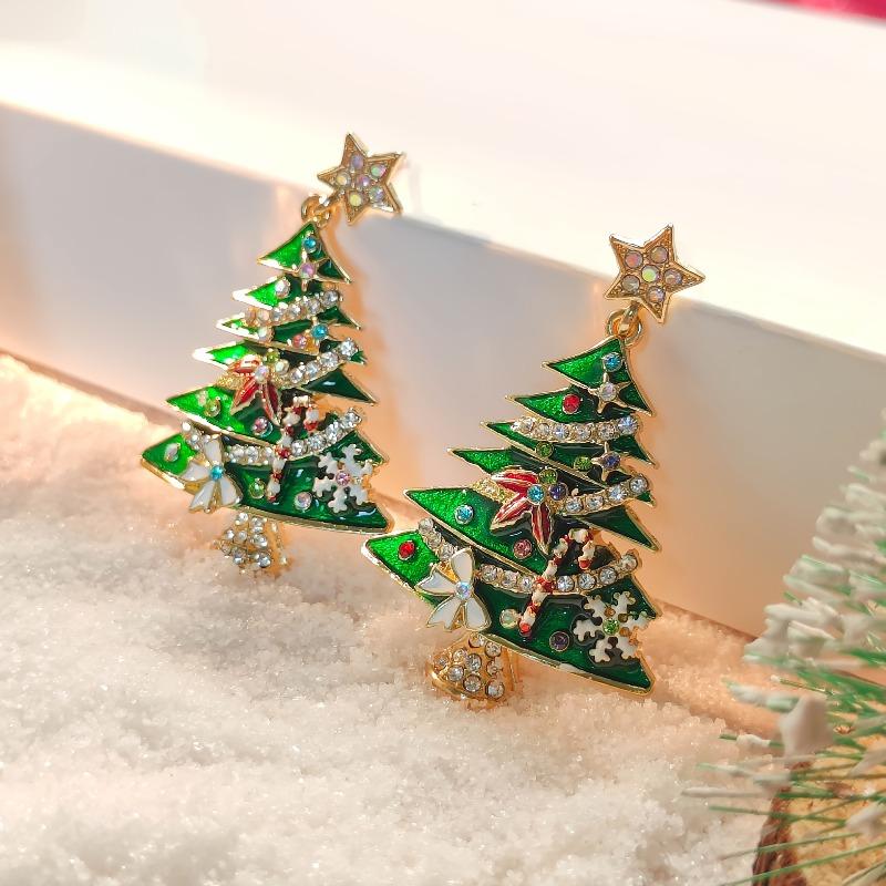 Elegant Green Christmas Tree Dangle Earrings for Women Daily Wear Holiday Celebrations Christmas Earrings Sophisticated Style