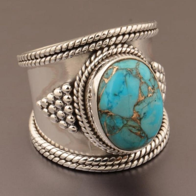 Bohemian Vintage Geometric Imitation Turquoise Ring for Women's Ethnic Jewelry, Daily and Party Clothing Accessories