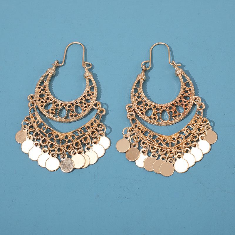 Bohemian Trendy Gold Sequin Tassel Hoop Drop Earrings Women's Luxury Ethnic Style Party Bridal Gift Accessories