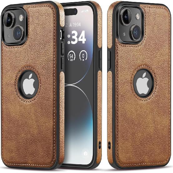 Classy Design Luxury Leather Phone Case for iPhone 15 Non-Slip Grip Full Body Ultra Slim Protective Case (2023,6.1”) (Brown)